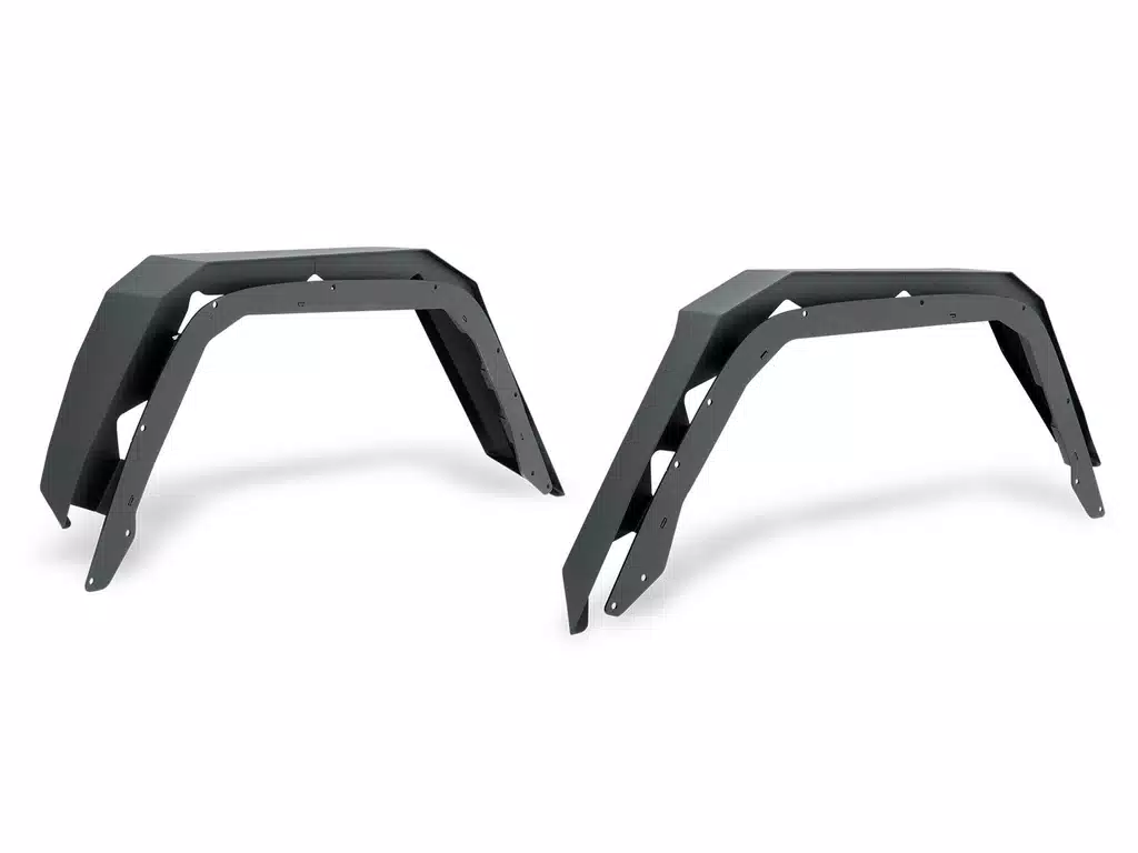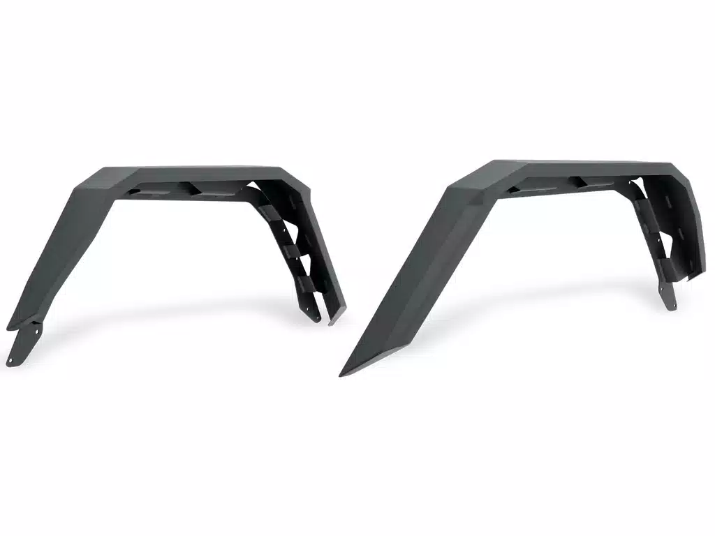 Crafted from heavy-duty steel and precision-welded for unmatched strength, Body Armor 4×4 Fender Flares protect your Jeep’s body from rocks, mud, and trail debris. The textured black powder coat finish resists corrosion and looks sharp on any Jeep build. With their aggressive, high-clearance design, these fender flares easily accommodate larger tires and lifted suspensions, making them perfect for hardcore trail runs or daily driving.