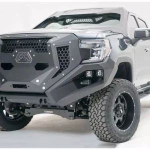 Unlike traditional bumpers, the Fab Fours Front Grumper combines the grille and bumper into a seamless unit, creating a striking armored appearance. Precision cut and made in the USA, each Grumper features integrated lighting options, winch mount compatibility, and aggressive styling lines that set your truck apart. Powder-coated for durability, it resists rust, corrosion, and trail damage, making it as functional as it is stylish.