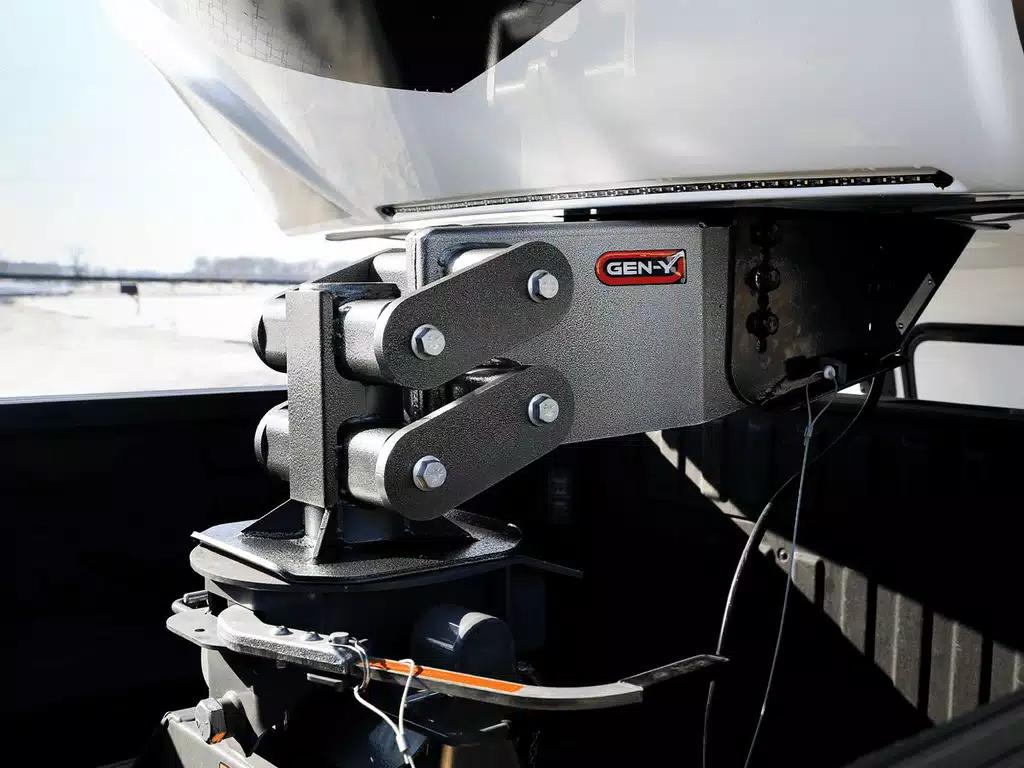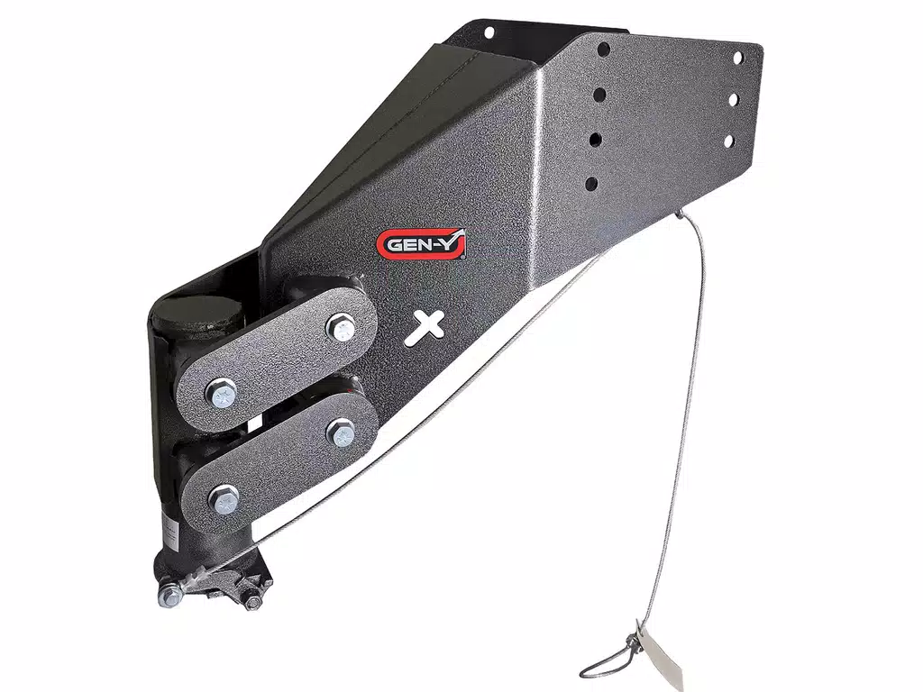 The GEN-Y EXECUTIVE 5th Wheel to Gooseneck Pin Box allows you to hook up your 5th wheel RV to the truck via a gooseneck ball. Thanks to GEN-Y’s innovative design, the bulky 5th wheel is eliminated from the back of the truck so you can use your entire truck bed when you’re not towing your RV. This product also eliminates additional costs of buying and installing a fifth wheel hitch. GEN-Y designed these pin boxes using heavy-duty steel and add a powder coating for maximum protection. There are two latching options available: Manual Latch Coupler or Auto Latch Coupler with Cable. Depending on exact part number, 18,000-30,000 lbs. towing capacity & 500 lbs. – 6,500 lbs. pin weight come equipped as well. Some reported benefits users have reported are increased cargo protection, increased fuel economy, reduced tire wear on truck and trailer, and reduced shock transfer. Thanks to GEN-Y’s patented Torsion-Flex Technology, its built-in suspension creates up to a 90% smoother ride, which you will surely notice and appreciate. Before you make your purchase, please review all photos and videos on this page to find the right product for your needs. This unit works with a recessed ball (if top of the ball is within 1″ of truck bed). Please note that the estimated break-in period for these items are 1,000 miles. All items include a limited lifetime warranty (5-years for moving parts) against all defects and are proudly made in the USA.