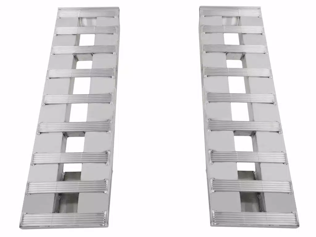 HD Ramp Heavy Equipment Ramps are a durable and reliable solution for loading and unloading heavy equipment onto trailers or flatbeds. These ramps are designed with high-strength aluminum, which makes them lightweight and easy to handle, yet able to support weights of up to 12,000 pounds.