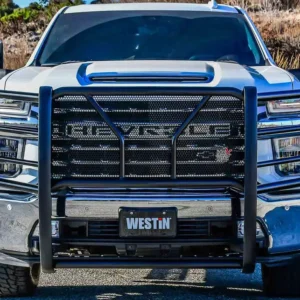 The Westin HDX Grille Guard comes equipped with heavy duty rubber pads and a full punch plate center grille. The punch plate center grille is offering optimal protection as well as rugged looks, completely enhancing your truck’s front end. A full wrap around design ensures complete grille and headlight protection.